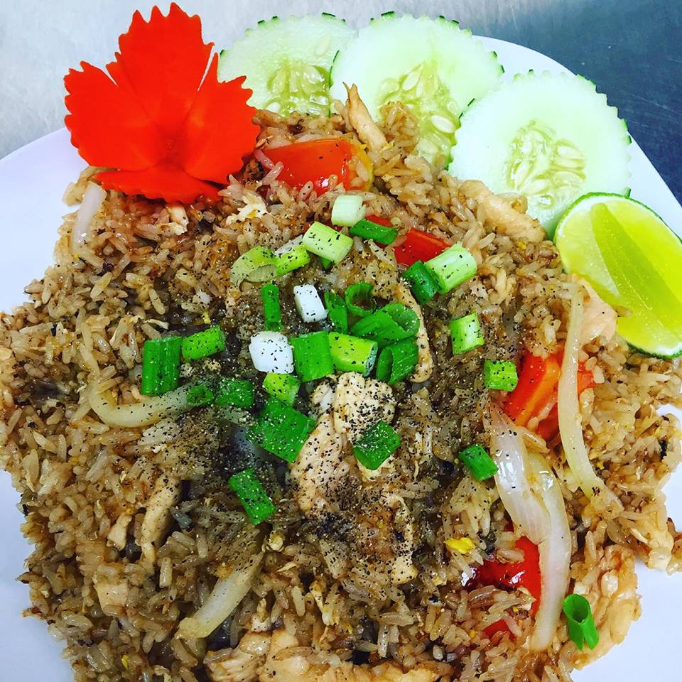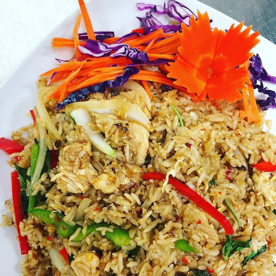 (chicken, pork, beef, shrimp or tofu) Thai fried rice with your choice of meat prepared with onions, egg, bell peppers and fresh Thai basil.