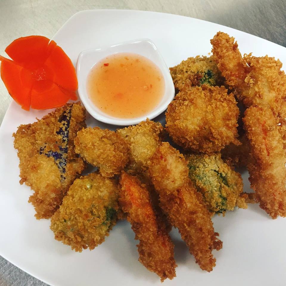 Deep fried battered shrimp and vegetable served with sweet chili sauce.