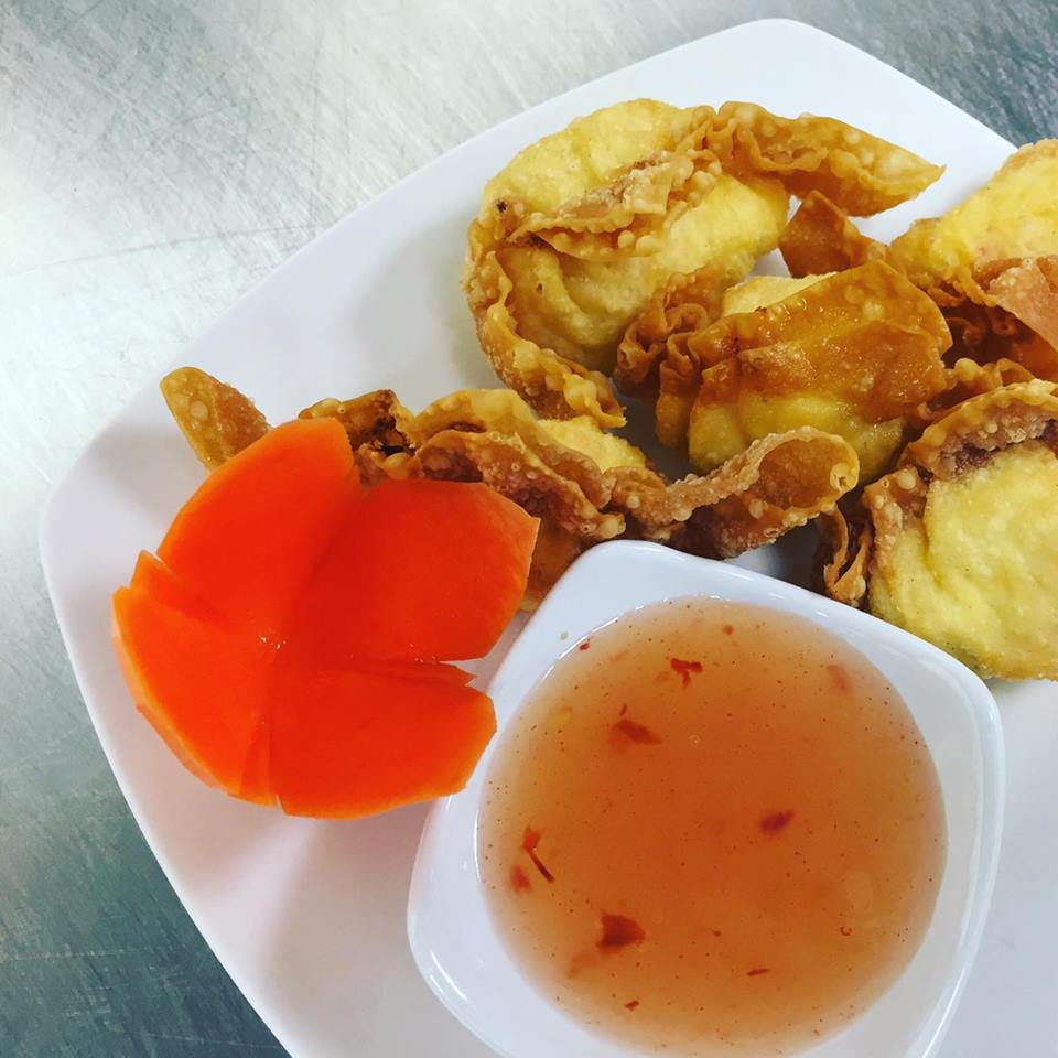 Cream cheese with crab meat wrapped in wonton skin. Served with sweet chili sauce.