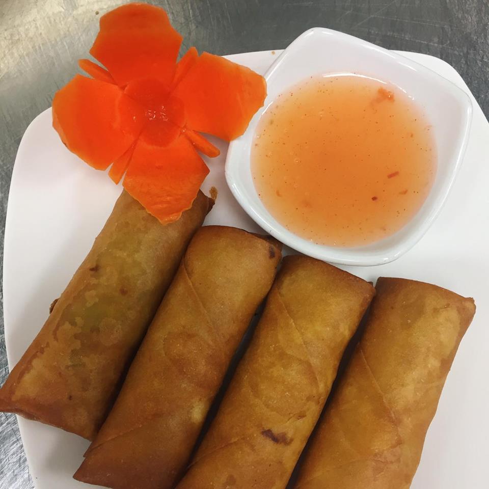 Deep fried spring rolls stuffed with cabbage, carrots and bean thread noodles. Served with sweet chili sauce.