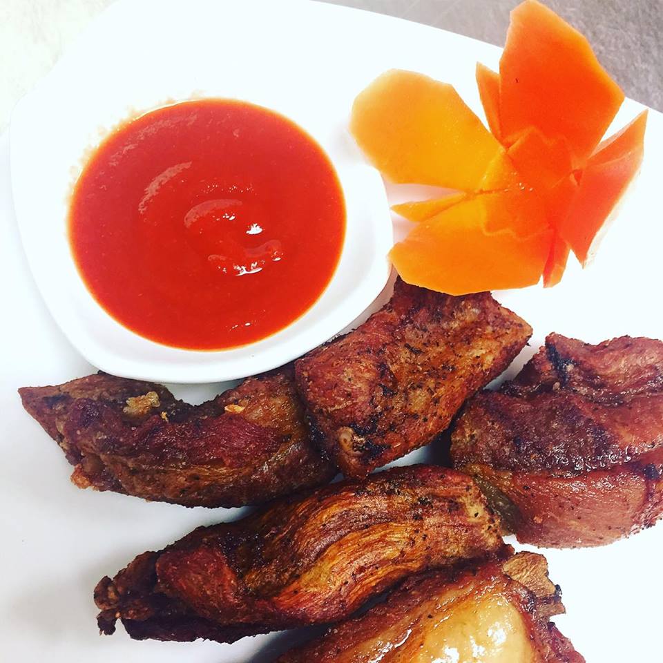 Deep fried pork ribs marinated with spice. Served with Sriracha sauce.